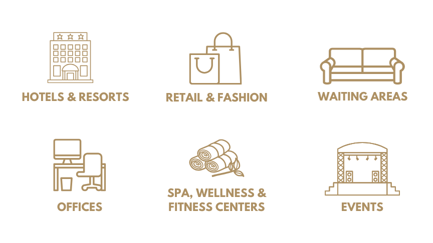 Ideal for: Hotels & residences, retail & showrooms, offices & co-working, clinics & spas, gyms, restaurants & lounges, galleries & events, elevators, corridors, and model units.